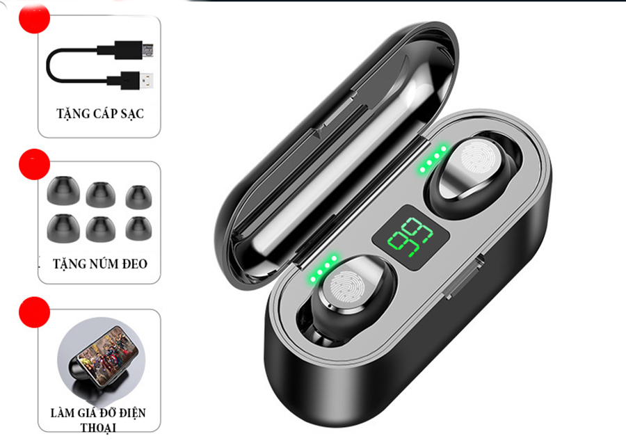 Sử dụng Chip Bluetooth 5.0 mạnh mẽ cho kết nối ổn định, nhanh hơn với khoảng cách kết nối xa (10m) và tiết kiệm năng lượng (Pin) Tự khỏi động khi nhấc ra khỏi hộp sạc Tự động kết nối Bluetooth với điện thoại khi ở trạng thai sẵn sàng. Tự ngắt kế nối khi bỏ vào hộp sạc Khoảng cách hoạt động: phạm vi 10m Công nghệ khử tiếng ồn cho âm thanh trung thực nhất và chất lượng cao (CVC 8.0) Dung lượng pin từng tai: 50mAh Trọng lượng tai nghe: 4g (rất nhẹ và khít cho cảm giác thoải mái) Dung lương Dock sạc: 2000 mAh, có thể sạc cho tai nghe 20 lần. Không chỉ sạc cho tai nghe mà còn có thể sử dụng để sạc cho điện thoại. Thời gian nghe nhạc: 120 giờ Thời gian đàm thoại: 150 giờ Cáp sạc: MicroUSB Có màn hình, đèn hiển thị chế độ đang sạc và báo Pin yếu. Dễ dàng kết nối với các thiết bị có kết nối Bluetooth, các điện thoại hệ điều hành Android, IOS, …